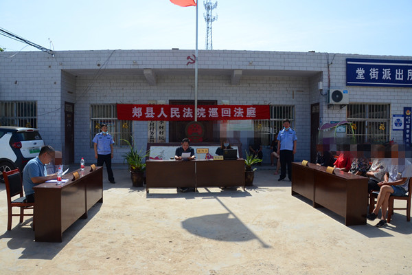 6月4日上午,骄阳似火,在蓝天白云下,庄严的国徽异常闪耀,一个藏在山沟里的村庄村委会大院内,审判人员、法警、双方当事人、代理人和旁听群众都有序地进入审判或旁听区域。“当!”,随着一声清脆的法槌敲响,审判员宣布:“现在开庭!”,全场顿时鸦雀无声,一场简朴而庄严的庭审开始了。