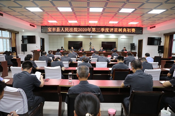 为有效落实县委、县政府深化全县干部作风整顿工作,深入推进“争第一、比贡献、树正气”活动扎实开展,8月28日上午,宝丰县人民法院开展第三季度“评星树典”工作述职大会。全院干警参加述职、院班子成员对每位干警的述职现场打分。