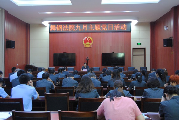 为进一步强化党员理想信念教育,提高党员的党性修养和思想觉悟,加强和规范党内组织生活,9月4日,舞钢法院积极开展9月份主题党日活动,舞钢市纪委监委驻舞钢法院纪检监察组组长李新红以《保持清正廉洁本色,做好干警担当表率》为题,为全体干警上了一堂生动详实的专题党课。