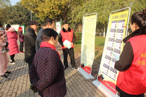 12月4日,郏县法院组织干警在县城行政路群众流动密集的休闲广场上开展失信惩戒宣传活动,引导群众树立“守信光荣、失信可耻”的意识,营造对失信被执行人的高压社会氛围。