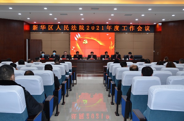 3月8日下午,新华区人民法院在八楼会议室召开2021年度工作会议,客观总结2020年工作,全面部署2021年工作,以新状态、新作风、孺子牛、拓荒牛精神,开启新征程。该院党组书记、院长杨红卫作重要讲话,全体班子成员及干警参加会议。会议由院党组成员、副院长李俊生主持。