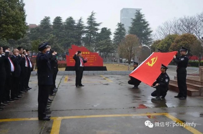 升旗仪式结束后,全体党员干警面向党旗,由院党组书记、院长徐合林领誓,集体重温入党誓词。徐合林院长勉励大家要以升国旗和重温入党誓词为契机,以中院党组提出的五破五立为要求,以“十项重点工作”为抓手,以我院党组提出的“提质效、强素质、严作风、抓管理”为主线,争取各项工作全面提升,努力实现院党组提出的争创“全省优秀法院”的工作目标。