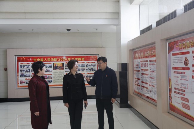 3月25日上午,省政法队伍教育整顿第四驻点指导组副组长、省高院二级巡视员潘家玲带领第四驻点指导组综合组的同志到平顶山市中级人民法院实地督导检查教育整顿工作。平顶山中院党组书记、院长王辉等陪同。
