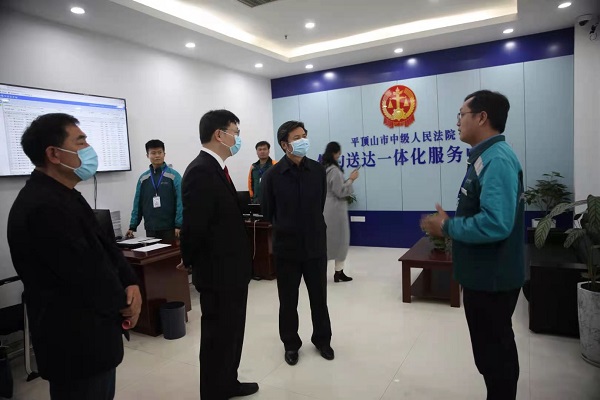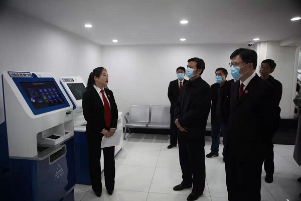 闫廷瑞副主任一行实地查看了中院诉讼服务中心、集中送达中心、法官办公室等场所设施情况,详细了解了诉调对接、繁简分流机制运行情况,现场观摩了速裁案件办理、民事案件开庭情况。
