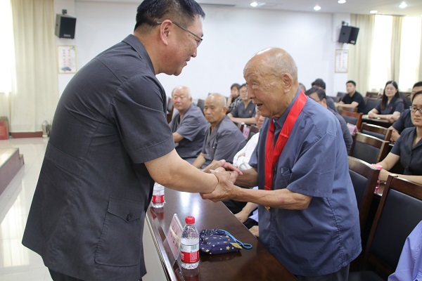 仪式在嘹亮的国歌声中拉开帷幕,党组成员、副院长岳中华代表院党组依次为9位党龄50年以上的老党员颁发了“光荣在党50年”纪念章,转达党组织的关怀和温暖,并向他们致以崇高敬意和诚挚问候。