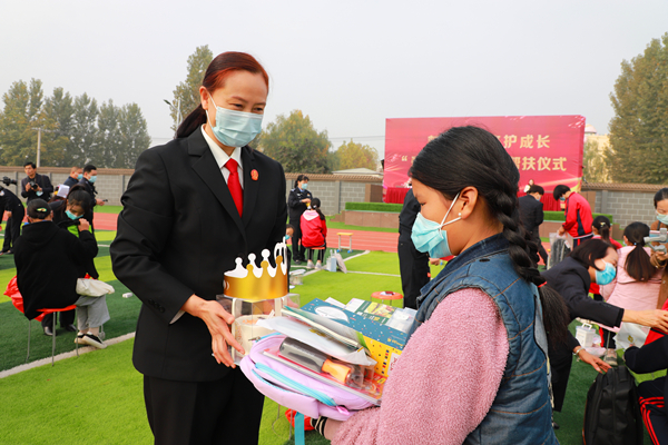 11月3日,郏县法院组织干警参加郏县佑未来护成长“爱心妈妈”结对帮扶活动,6位“法官妈妈”在郏县安良镇一中与受助女童认亲结对,为孩子们送去了亲情和温暖。
