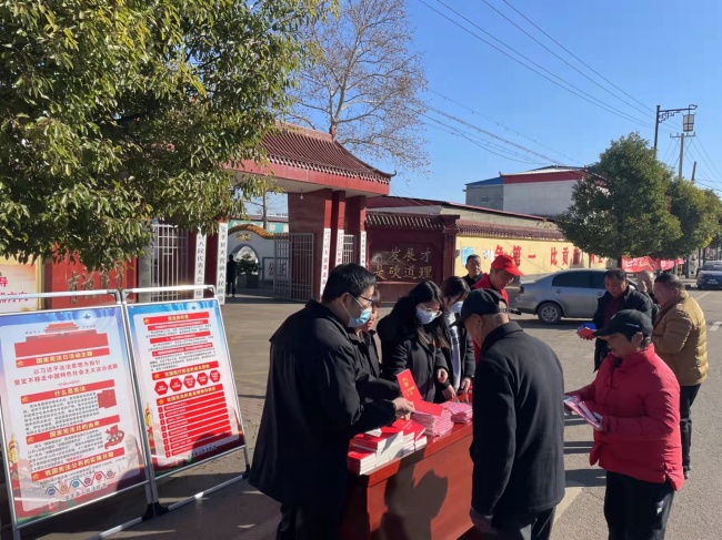 作为“宪法宣传周”的组成部分,宣誓仪式后,宝丰法院在县城主干道上、人民法庭驻地人流密集处设置宣传台,干警们分别向群众赠送《宪法》和《民法典》单行本,为他们讲解《宪法》和《民法典》的源流、立意和历史地位,引导广大群众倡树“宪法和法律至上”的法治精神,学会用法律维护权益、指导生产生活,共同享受社会主义法治化的丰硕成果。