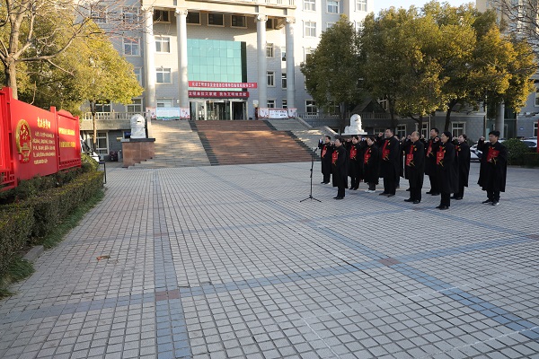 12月3日早8点,晨曦微露、寒风不起,为深入学习贯彻党的十九届六中全会精神,进一步弘扬宪法精神,宝丰县人民法院举行宪法宣誓仪式,全体员额法官参加。