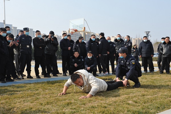 培训中,执行局副局长王旭辉向干警讲解了执行工作中采取拘留、拘传等强制措施的规范化流程,以及在日常工作中的注意事项。汝州市法院法警队大队长陈增洁和法警队副政委邱帅超组织执行干警模拟演练控制单人、多人及暴力抗拒执行的突发事件场景应对,掌握警棍、手铐等警用器械的熟练使用方法,徒手控制动作要领以及规范使用警用器械的方法和注意事项。
