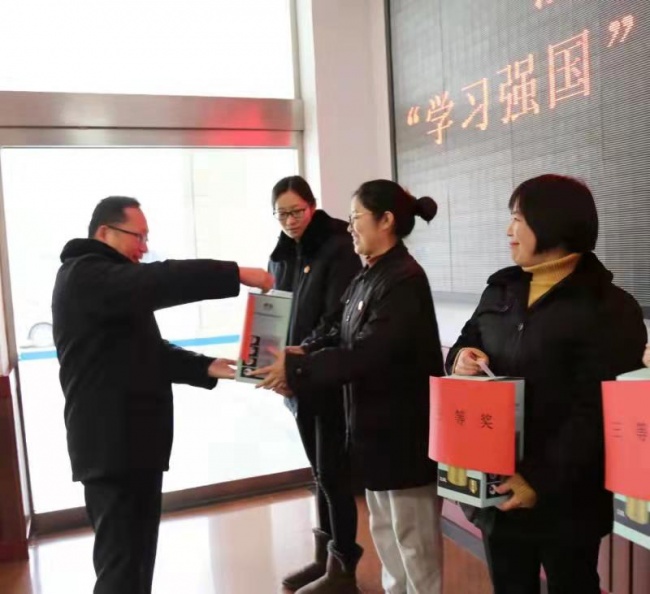 比赛规则为参赛者依托学习强国APP“我要答题”中的“挑战答题”模块,限时30分钟进行答题,截取成绩最好的一次作为最终成绩,并排出名次。通过激烈的角逐,本次比赛共竞选出一等奖1名,二等奖3名,三等奖6名。挑战赛结束后,沈伟轩为获奖者颁发了奖品,以资鼓励,并希望大家在轻松的氛围中学好强国知识,当好学习标兵。
