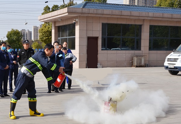 此次演练,新华法院专门邀请了兴盾集团平顶山物业分公司消防员现场为干警讲解灭火器的使用、初期火灾的扑救等常识,详细介绍了灭火器的有效使用距离、使用角度、使用站位等注意事项。演练从实战出发,消防员引导法警纷纷拿起灭火器进行了现场操作,以便在遇到突发情况时能够正确安全使用消防器具。由相关人员触发烟感探头报警,并按下手动报警按钮,模拟火灾发生真实场景,火灾自动报警系统立马发出警报。“火灾发生时,大家应保持镇静,按照疏散路线有序撤离,逃生时,要注意用湿毛巾捂住口鼻,弯腰撤离火灾现场。”消防员边讲解边提醒大家如何有序从楼梯安全出口迅速往外撤离。