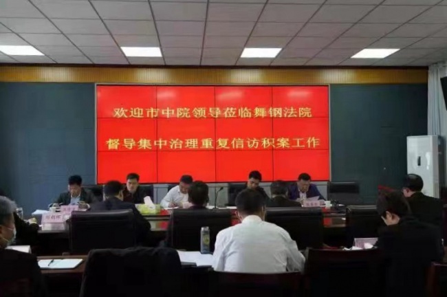 会上,市中院督导组首先听取了舞钢法院近年来的信访工作整体情况以及集中治理重复信访积案专项工作开展情况,并就重点信访案件及重点信访人的化解稳控情况逐案听取了汇报。