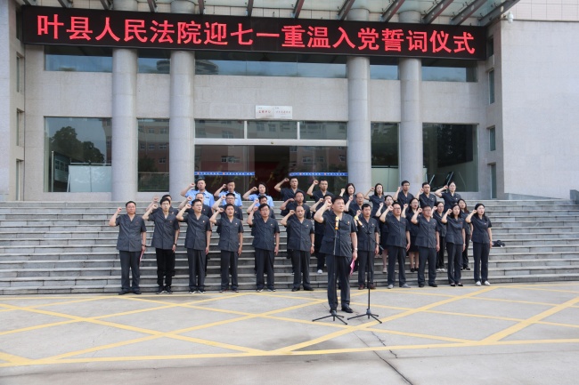 为庆祝中国共产党成立101周年,6月30日上午,叶县人民法院举行“迎七一”重温入党誓词宣誓活动。