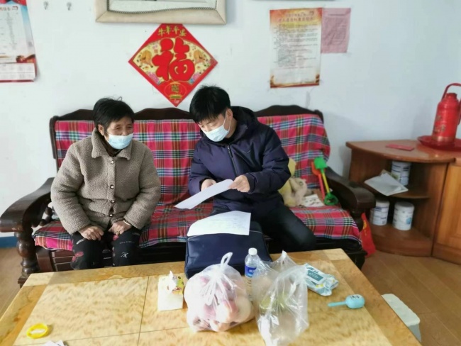 李明要求各帮扶人走访入户,深入了解群众需求,探讨更多的乡村经济振兴门路,做到帮扶工作有的放矢。李明来到谭团营家中进行走访入户,实地查看住房及饮水安全保障落实情况,详细询问生产生活及子女上学情况,了解收入来源和生活开支等情况,并认真查看他们的建档立卡脱贫户基础信息卡等相关材料。李明对老人积极乐观、感念党恩的生活态度给予充分肯定,并叮嘱老人照顾好身体,带领全家过美好生活。