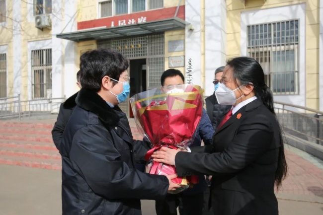 刘士浩一行送去省法院给予的慰问金,并代表省法院党组、市中院党组对魏钰玺和法庭干警表示慰问,致以新春祝福和诚挚问候。