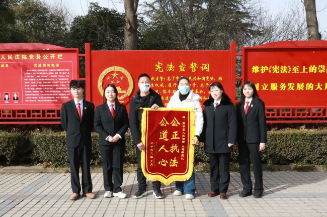 一面锦旗、一种肯定,一面锦旗、一股力量。2023年1月17日上午,一起装饰装修合同纠纷案件的当事人冒着严寒满怀感激地将一面印有“公正执法 ,公道人心”的锦旗送到了宝丰县人民法院速裁团队王晓芬法官手中,并说道:“这面锦旗我已准备许久,但因疫情原因耽搁至今未能及时送出,今天终于送到您手里了,真是太感谢了。”这是2023年宝丰法院速裁团队收到的第一面锦旗,也是最珍贵的“新年礼物”。