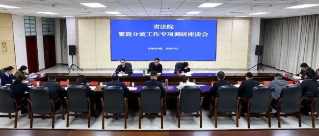 秦德平对平顶山法院民事诉讼程序繁简分流等工作给予充分肯定,并强调要聚焦关键环节精准发力,推动司法质效再提升,重点抓好三方面工作:一是优化“纠纷在院时间”。厚植司法为民理念,优化案件流转流程,打通立案、审理、结案等节点堵点,压缩非审理性耗时,高效化解纠纷,切实减轻当事人诉累。二是完善繁简分流机制。通过科学甄别案件、合理配置资源、强化内外联动等务实举措,实现繁简精准分流,落实“简案快办、繁案精审”,维护司法裁判的公正性、稳定性和权威性。三是强化“立审执”协调联动。打破部门壁垒,建立信息共享、流程衔接的协同机制,立案分流纠纷、审判保障执行、执行反馈难点,形成全流程工作合力。