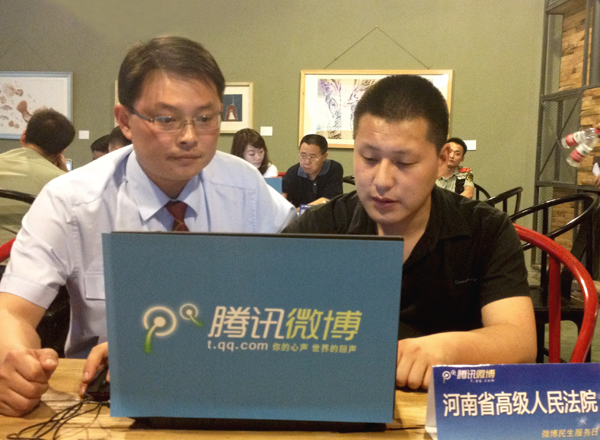 河南高院“豫法阳光”微博自2011年7月7日开通以来,发送微博3000多条,收到网友各类诉求800余条,关注人数已达140000余人。“豫法阳光”微博凭借自身影响力,连获多项殊荣,已成为政法系统知名官方微博。