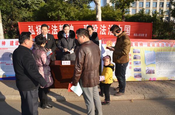 12月4日上午,郏县法院政治处主任岳俊琦一行八人走上街头开展法制宣传活动,为群众送上一份份“法律大餐”,受到了广大群众的欢迎。
