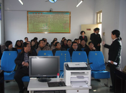 2014年12月24日上午,平顶山市卫东区人大常委会主任王向阳带领26名省市区三级人大代表,视察了平顶山市卫东区人民法院工作,实地考察了东高皇法庭建设情况。院长王远蒙就法院整体工作向三级代表作了汇报。
