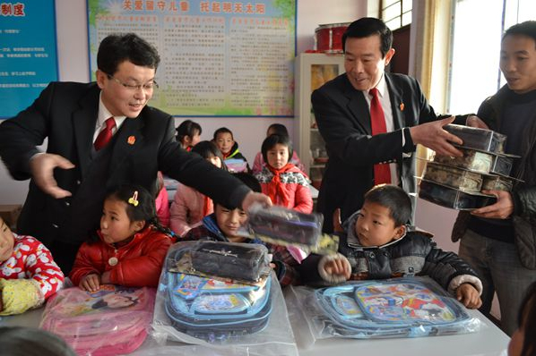 12月25日下午,湛河区法院党组书记、院长李光一行三人带着全院77名干警捐助的钱物到曹镇乡五虎刘小学为生活特别困难的15名留守儿童发放了4235元爱心捐助,向家庭贫困的40名留守儿童赠送了书包、文具盒等学习用品。