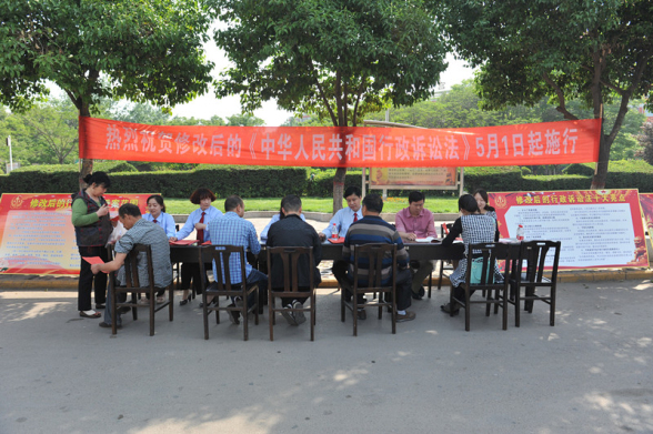 新修改的《中华人民共和国行政诉讼法》将于5月1日起施行,新《行政诉讼法》扩大了行政诉讼受案范围,完善了行政诉讼立案、审理、执行等制度,明确了行政机关负责人出庭应诉的制度;延长了起诉期限;增设了行政附带民事争议解决制度等重要内容。为让更多群众了解、学习、宣传及运用新行政诉讼法,2014年4月29日,汝州市法院干警在市政府法制办工作人员配合下在市工人文化宫组织开展新行政诉讼法宣传活动。