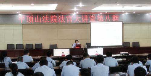 5月8日下午,全市法院第八期法官大讲堂在市中院三楼会议室举行,市中院审监庭副庭长尹晓雯作了题为《关于民事再审事由的理解与适用》的辅导报告,两级法院全体审委会委员、立案庭、民事庭、审监庭全体干警通过现场和远程视频两种方式参加了此次学习活动。