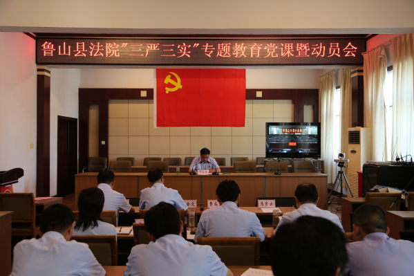 7月1日,鲁山县法院在该院二楼会议室召开“三严三实”专题教育动员会,并由院党组书记、院长李俊峰为全体党员干警上“三严三实”专题教育党课。院班子成员及全体干警参加会议并聆听党课。会议由院党组副书记、常务副院长曹高升主持。