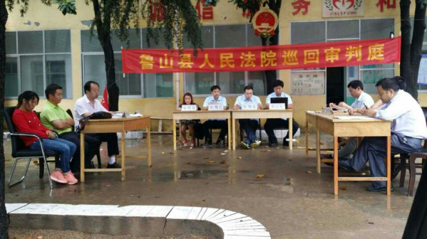 2015年6月29日,为了方便群众诉讼,鲁山县人民法院让河法庭的法官们,坚持按照原定时间冒雨到农村开展巡回审判。