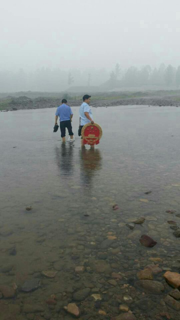 在即将到达巡回审判地点的时候,由于连日的阴雨,造成此前必经之路的一条小河河水上涨,车辆无法通行,法官们毫不犹豫的挽起裤脚,趟水过河,保证了庭审准时开始,受到了旁听群众和当事双方的称赞。