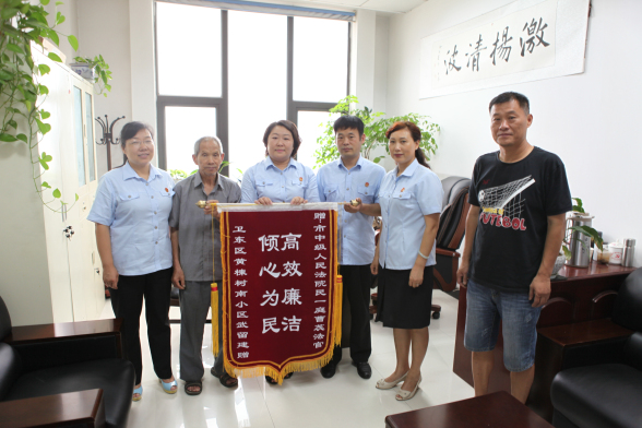 7月31日上午,当事人武某及亲属顶着酷暑,将一面写着“高效廉洁 倾心为民”的锦旗送到中院民一庭。