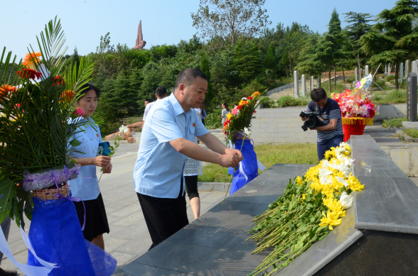 为纪念抗战胜利70周年,深切缅怀抗战英烈的光辉业绩,弘扬爱国主义精神和民族精神,积极培育和践行社会主义核心价值观。9月2日上午,舞钢法院青年干警在虎头山烈士陵园参加了“舞钢市纪念抗战胜利70周年群众集会活动”。此次集会,法院干警聆听了虎头山抗战英雄的革命故事,并怀着一颗敬畏的心向革命先烈敬献鲜花。集会活动结束后,该院青年干警纷纷表示,一定要把在此次活动中的深切感受化为力量落实到法院工作中,踏实做好本职工作,为建设富裕文明、生态宜居、平安幸福舞钢贡献自己的青春和力量。