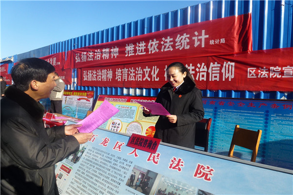 今年以来,石龙区法院积极按照“六五”普法规划开展了形式多样的法制宣传教育活动。首先,该院党组利用“法官夜校”组织干警开展专题学习,积极助推干警司法能力提升;其次,在全区范围大力推进法制宣传教育进机关、进乡村、进社区、进企业、进学校、进单位活动,把法律服务送到广大基层干部和人民群众手中,引导树立“学法、懂法、用法、守法”的法律意识和法治观念;再次,与辖区的电讯公司联合开展法制短信群发活动,营造浓厚的法治宣传环境,共同推进辖区法治社会建设。