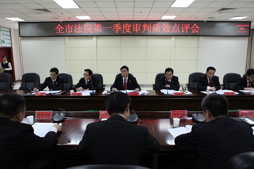 会上,市中院审管办主任王廷霞对全市法院2016年第一季度审判质效情况进行了点评,审委会专职委员刘志国通报了2016年1月1日至4月18日全市基层法院、全市基层法院审委会委员及中院审判执行部门收结案情况,各基层法院主管院领导以及中院民一庭、民二庭、民三庭、行政庭、审监庭就如何完成审判执行工作目标任务作表态发言。