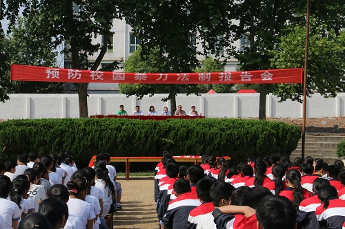 为了将防范校园欺凌活动落到实处,6月12日下午,我院少审庭法官冒着酷暑专程赶到我市第五十六中学,向同学们做题为“预防校园暴力”的专场法制报告会。会上,法官结合实际案例,向同学们讲述了什么是犯罪,什么是校园暴力,青少年应当如何避免走上违法犯罪道路,应当如何面对校园暴力等问题。全校一千多名师生参与了报告会。平顶山市电视台对当天的法制报告会进行了全程跟踪采访并在14日晚的《民情民声》节目中予以报道。广大师生对法制报告会表示极大欢迎,希望今后多举办类似的活动,提高青少年的法律意识和防范能力。