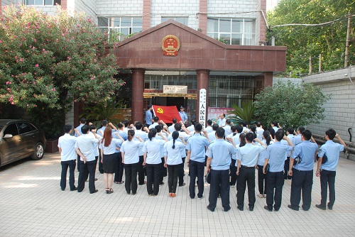 为进一步增强党性观念、强化党性意识,深入贯彻落实中央、省、市、区委和上级法院“两学一做”学习教育安排部署,6月17日上午,新华区人民法院全体干警以集体宣誓的形式组织全体党员举行“重温入党志愿、重温入党誓词”主题党日活动。