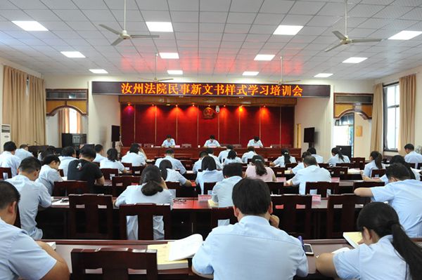 2016年8月26日下午,汝州市人民法院民事新文书样式学习培训会于在一号审判庭召开,由院党组成员、副院长于占琦授课,审委会专委刘延斌、车顺国以及从事民事审判工作的干警们参加了培训。