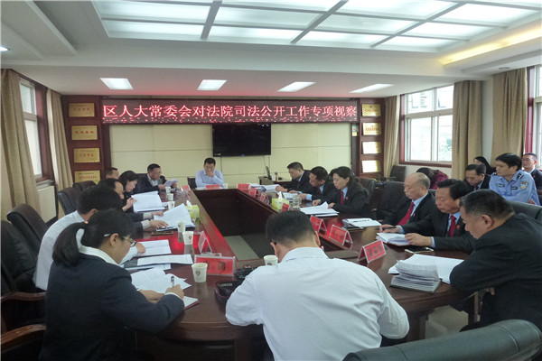 随后,视察组在区法院会议室听取了该院党组书记、院长宋景婵所作司法公开工作报告。视察组成员一致对区法院司法公开工作中的新举措、新成效以及整体工作成绩予以充分肯定,并从加大物质保障、拓宽广度、加大工作力度以及重点突出执行信息公开,加大对“老赖”的曝光和惩治力度等方面提出了建设性意见和建议。