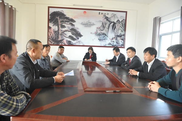 在于窑村党群综合服务中心,杨长坡院长一行与米庙镇武装部长兰彦峰、河南岩海金田生态农业科技有限公司负责人郭建民及于窑村村两委干部进行了座谈。听取了河南岩海金田生态农业科技有限公司扶贫项目进展情况汇报,了解了于窑村村民文化游园工程建设情况、波尔多山羊养殖项目进展情况和种植花椒树、核桃树项目进展情况。杨长坡院长提出:一是按照“五个一批”脱贫措施,分类抓好脱贫,特别是要做好与河南岩海金田生态农业科技有限公司的协调沟通,通过发展养殖业、种植业等引领群众脱贫。二是要形成扶贫合力,针对河南岩海金田生态农业科技有限公司在扶贫项目上遇到的困难,一定会积极协调市、乡两级政府有关部门,争取使扶贫项目尽快落地,使贫困群众尽快得到受益。