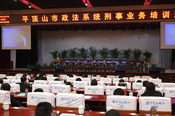 平顶山法院网讯 4月24日,由市中级法院主办的全市政法系统刑事业务培训班在市行政审批中心会议室举办。全市政法委、公安、检察、法院、司法等部门从事刑事工作的领导和干警,及部分律师共390人参加了培训班。市委常委、政法委书记李永胜、市中级法院院长郭保振、市检察院检察长刘新年、平顶山市市长助理、市公安局长崔建平、市委政法委副书记王向阳、市委政法委副书记聂涛等领导同志参加了培训班。市委常委、政法委书记李永胜作了重要讲话。培训班由市中院郭保振院长主持。