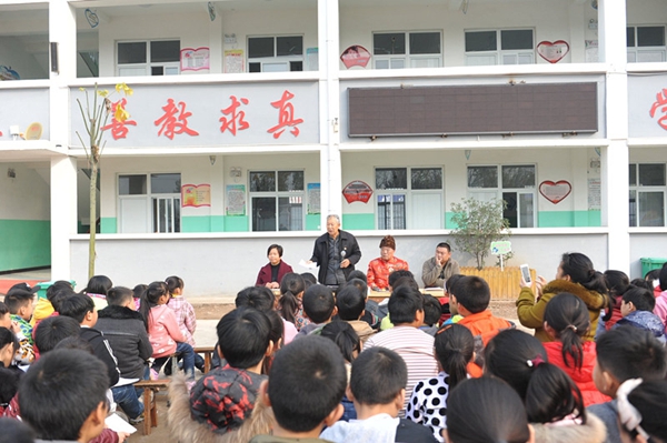 马麦成和王长海两位老干部分别向学生们宣讲了党的十八届六中全会精神、雷锋精神、社会主义核心价值观和《中小学生守则》,教育孩子们在日常生活中要爱校尊师、爱家孝亲、爱学成才,不懈传递“小爱”就能汇聚成对祖国的“大爱”。教育同学们热爱党、热爱人民、热爱祖国,从小树立远大理想,努力学习,打好基础,成长为国家的有用之才,成为实现伟大中国梦的中坚力量。