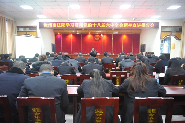 11月29日下午,汝州市法院在一号审判庭举办“学习贯彻党的十八届六中全会精神”宣讲报告会,邀请汝州市委党校高级讲师李健作报告,全体班子成员及干警参加了学习。