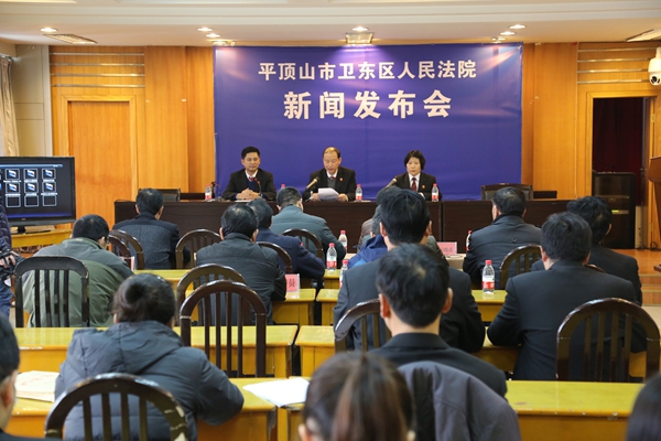 2016年12月18日下午,卫东区法院召开新闻发布会,对该院推进家事审判工作情况进行发布。河南法制报、平顶山日报、晚报、平顶山电视台等媒体参加新闻发布会,并邀请部分市人大代表、政协委员出席,卫东区法院新闻发言人范战捷主持发布会。
