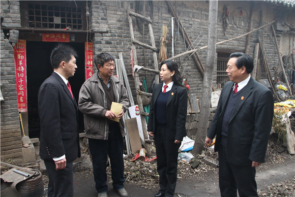 2016年12月20日上午,平顶山市石龙区人民法院党组书记、院长宋景婵带领该院执行局干警分别来带宝丰县大营镇及高庄街道张庄社区,为困难申请执行人送去慰问金、大米及食用油等慰问品。