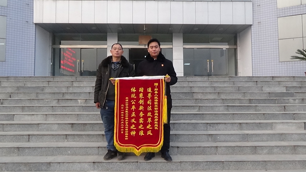 1月3日,郏县法院堂街法庭里一派喜庆祥和,一起劳务者受害责任纠纷案件受害人韩某,专程为朱法官送来了题为“追寻司法改革之风,踏乘创新务实之风,体现公平正义之神”的锦旗,赞扬法官的高效办案。
