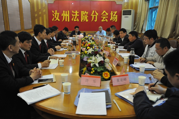 2017年4月20日上午,临颍县人民法院党组书记、院长王黎明一行12人莅临汝州法院交流执行工作。在二楼会议室,汝州法院党组书记、院长杨长坡,党组副书记、副院长杨西庚,党组成员、执行局长桂东辉,审委会专职委员刘延斌以及相关庭室负责人参加了座谈会。
