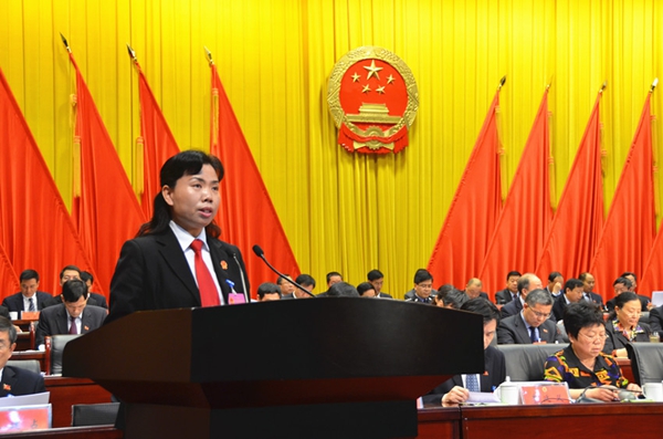 2017年4月26日上午,郏县法院代院长宋景婵在郏县第十五届人民代表大会第一次会议上向与会代表作法院工作报告。