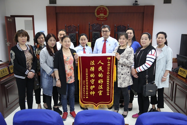 5月3日上午,平顶山市卫东区北环路办事处下牛村第一村民组的九名村民,满怀着对办案法官的真诚谢意,来到市中院民三庭,将写有“人民好法官、法律守护神”的锦旗送到了办案法官手中,感谢法院伸张正义,依法维护了群众的合法权益。
