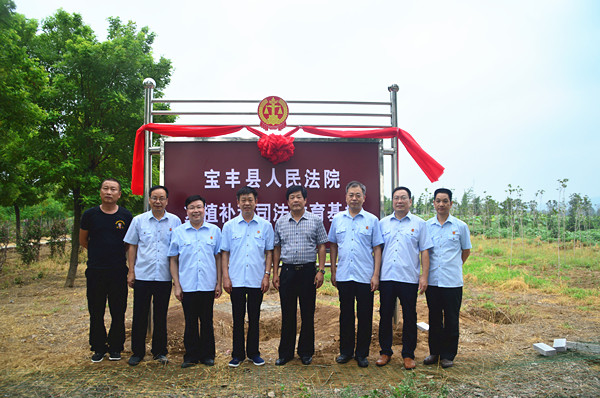 8月1日,“宝丰县法院复植补种司法教育基地”正式启动。平顶山市中院党组成员、副院长马建斌,宝丰县人大常委会副主任刘怀振,宝丰县法院党组书记、院长杨红卫共同为“教育基地”揭牌。