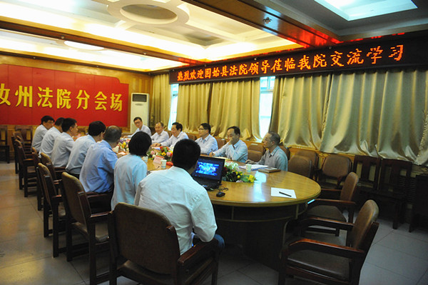 座谈会上,两院领导分别介绍了本院的审判执行工作和队伍建设基本情况,双方就案件繁简分流、诉调对接、多元化调解、小额速裁、家事审判、立案、送达、鉴定等方面的具体做法进行了交流,并在“两庭”建设、审判团队组建等方面进行深入探讨。